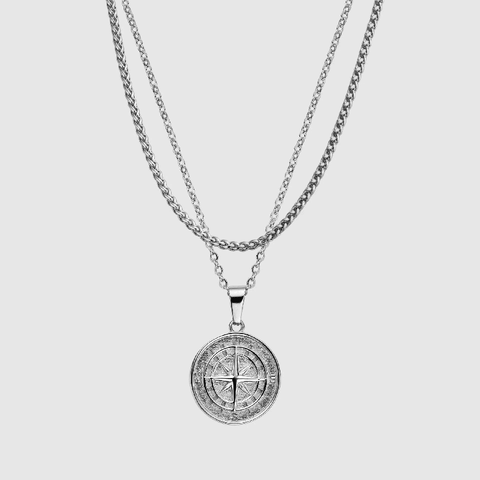 నార్త్ స్టార్ - స్టెయిన్లెస్ స్టీల్ రౌండ్ బాక్స్ చైన్ సెట్తో సిల్వర్ టోన్ లాకెట్టు