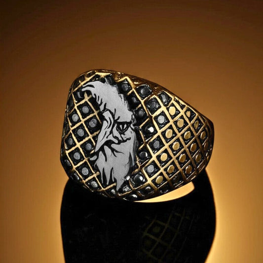 Royal Series - REGAL GRID RING - Pure Stainless Steel Menâs Gold-Plated Ring â Statement Luxury Jewelry (Size : 16-26)