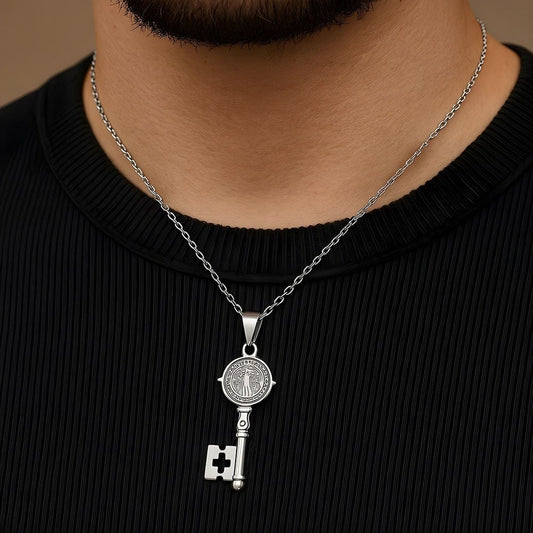 सिल्वर नेल्स - शुद्ध स्टेनलेस स्टील 24 इंच गोल बॉक्स चेन के साथ मिश्र धातु पेंडेंट, पुरुषों और लड़कों के लिए यूरोपीय ट्रेंडिंग स्टाइल