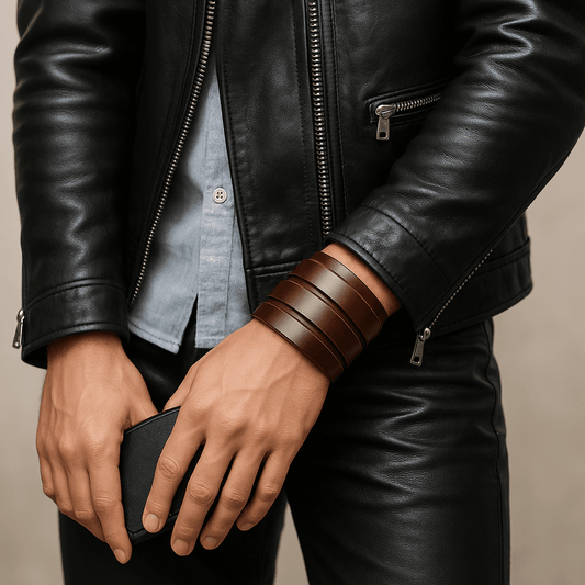 CROSSLOOM - Coffee 8mm Genuine Leather Bracelet with Stainless Steel Lobster Clasp for Men & Boys (15 inch)