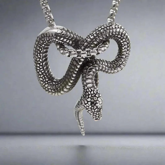 सर्पेंट ऑफ़ इटरनिटी - शुद्ध स्टेनलेस स्टील 24 इंच गोल बॉक्स चेन के साथ मिश्र धातु ग्लूटोनस स्नेक पेंडेंट, पुरुषों और लड़कों के लिए यूरोपीय ट्रेंडिंग स्टाइल