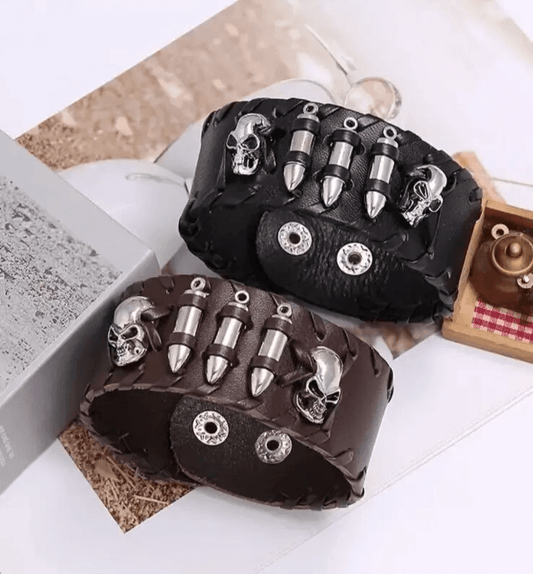 CRUSADER LEGION BLACK - 23mm Genuine Leather Bracelet with Stainless Steel Magnetic Black Buckle for Men & Boys (8.5 inch)