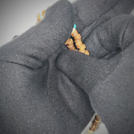 Designed to blend rugged texture with coastal charm, the 8 mm beads are finished in warm brown tones and adorned with turquoise and ivory-toned spacers. The result is a necklace that pairs beautifully with denim, tees, or a summer button-down, making it ideal for daily wear or weekend getaways.