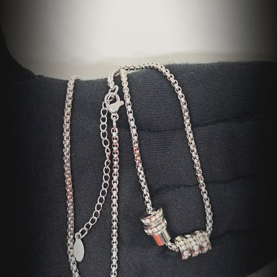 CRYSTAL RING BAR - Pure Titanium Steel Pendant with 16 to18 inch Adjustable Round Box 4mm Chain for Men & Boys