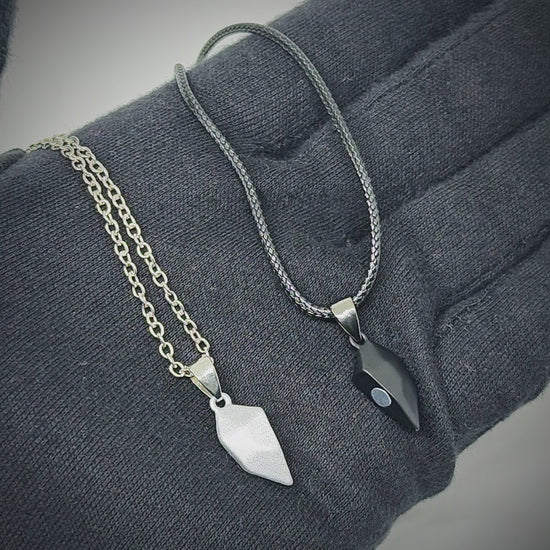 - Two-tone, faceted heart design: The pendant features a split-heart silhouette with angular facets that shimmer as you move. One half presents a deep gunmetal tone while the other glows in a bright silver finish, creating a distinctive contrast that catches the eye from every angle.