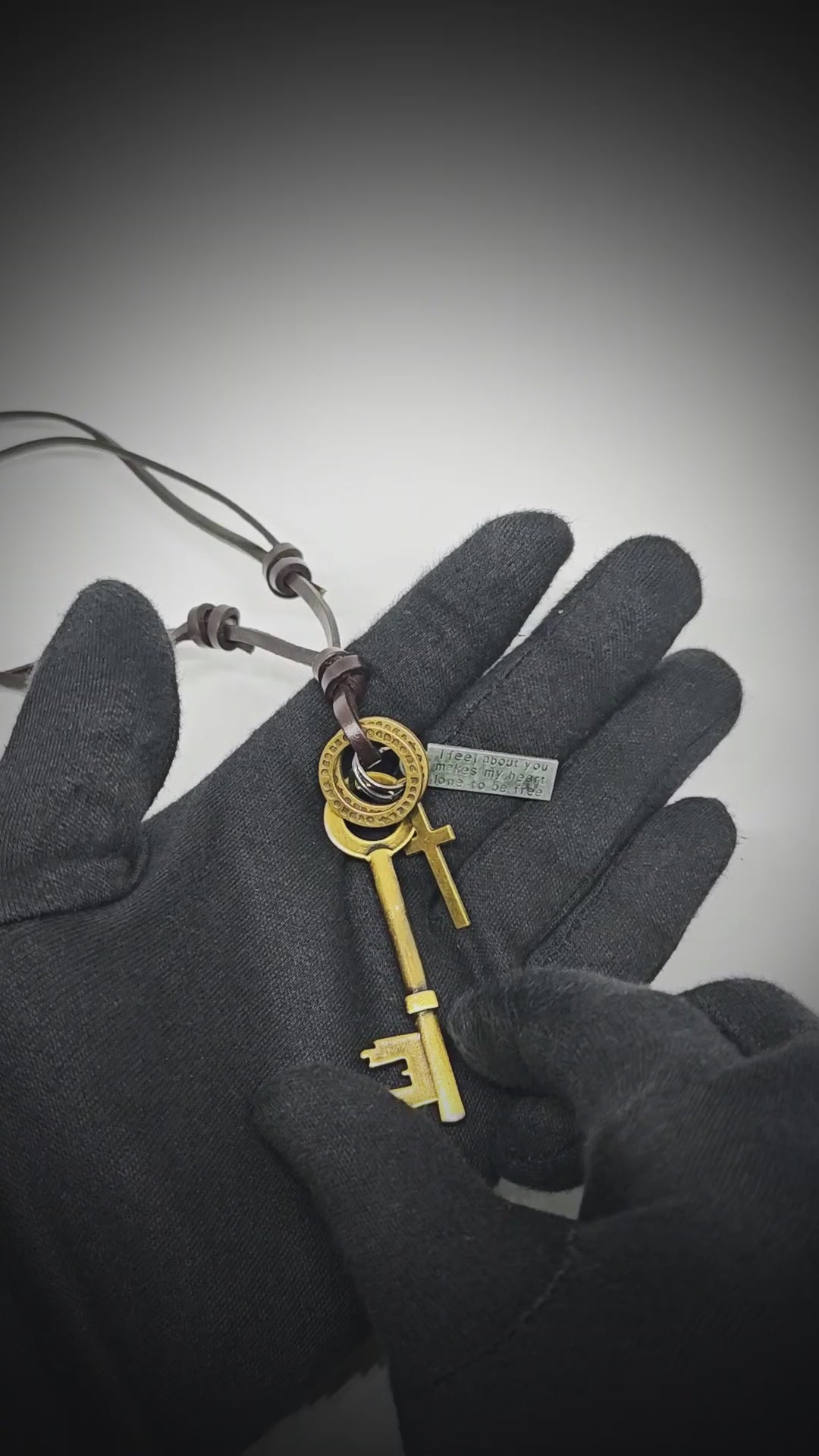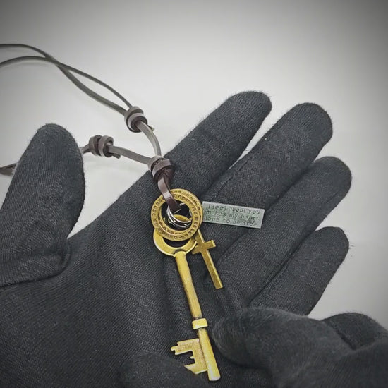 GOLDEN KEY OF FAITH is a bold symbol of guidance and conviction, featuring a 2.5-inch stainless steel pendant finished in a warm antique gold tone. Suspended on an adjustable leather rope, this striking necklace is designed for men and boys who wear faith as a daily expression.