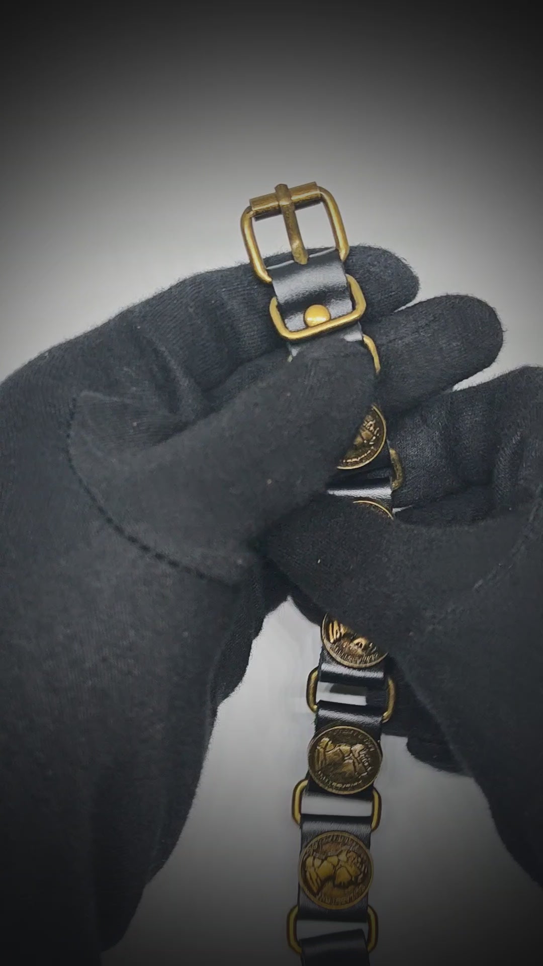 HERITAGE COIN 20mm Genuine Leather Adjustable Bracelet for Men & Boys — a bold, timeless accessory built for everyday wear. The strap is crafted from genuine leather, accented by brass-tone coin charms that catch the light with every move.