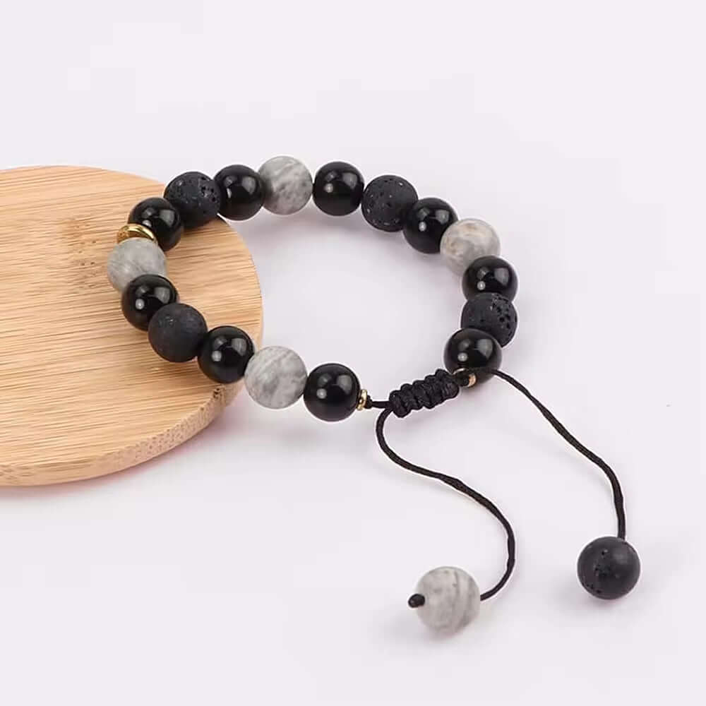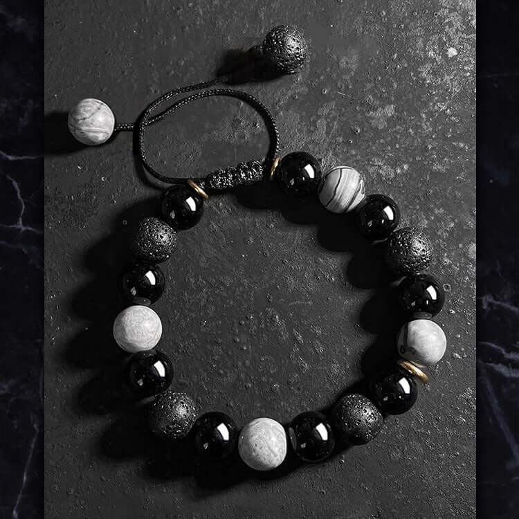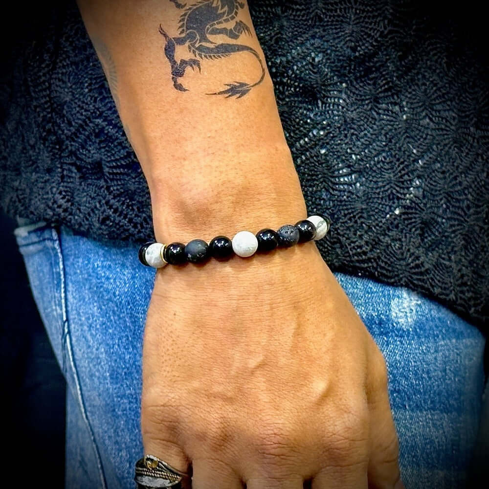 मैजिक नाइट - प्राकृतिक पत्थर के साथ मोती कंगन - पुरुषों और लड़कों के लिए खिंचाव / समायोज्य कंगन
