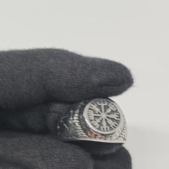 Royal Series MIDGARD PROTECTOR RING — a bold, statement-making ring crafted in pure stainless steel. Designed for men who demand durability and unmistakable style, this steel-plated ring pairs a rugged edge with refined detailing. The centerpiece presents a circular motif with a protective, rune-inspired pattern, while the band features intricate engravings that recall ancient craftsmanship. Textured side profile adds depth and catches the light from every angle, making this piece pop whether you wear it alone or as part of a curated jewelry look.