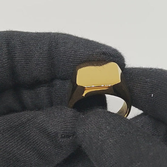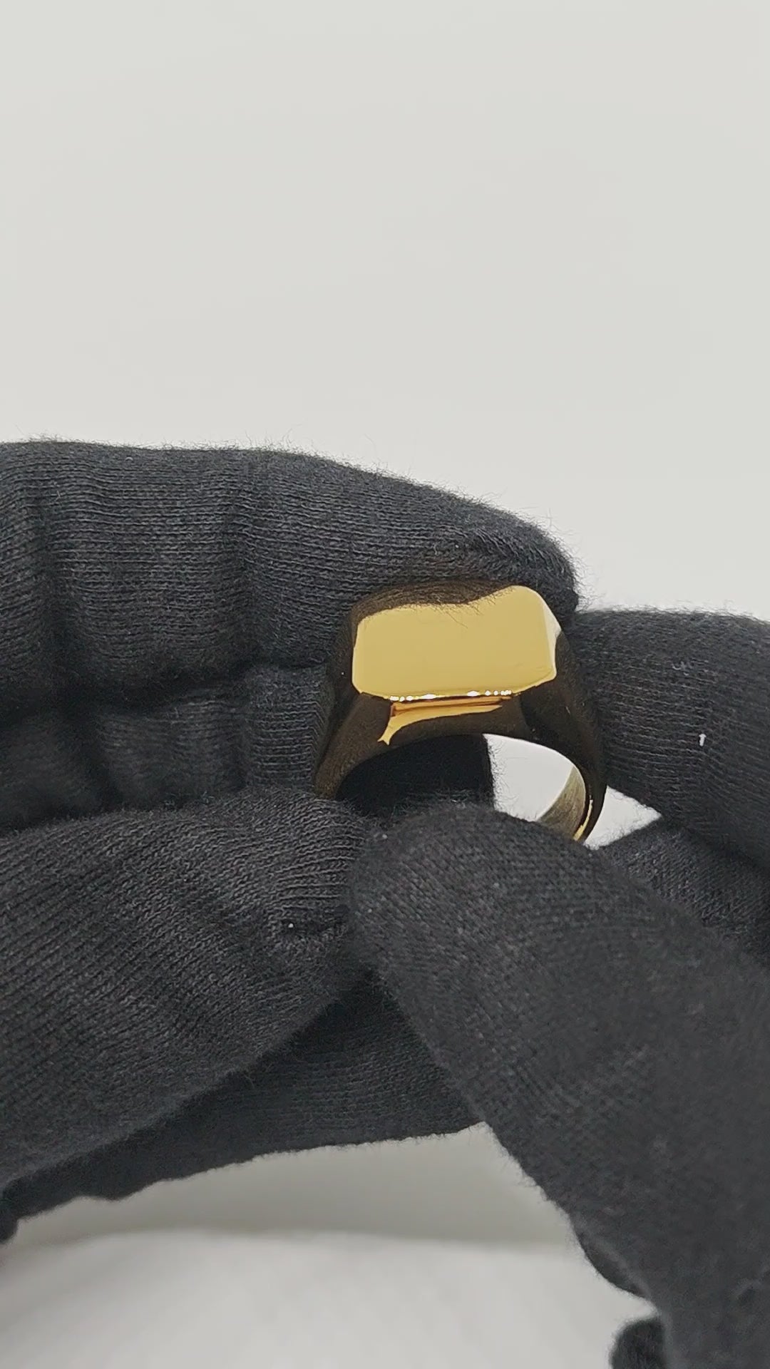 Designed with a masculine, signet-inspired silhouette, the Monarch Gold Ring features a broad, flat top and smooth, rounded edges for everyday wear. The combination of a sturdy stainless steel core and a durable gold-plated coating ensures lasting shine and resistance to daily wear. Its polished highlight contrasts with softly brushed sides, creating a refined, modern luxury that speaks with quiet confidence.