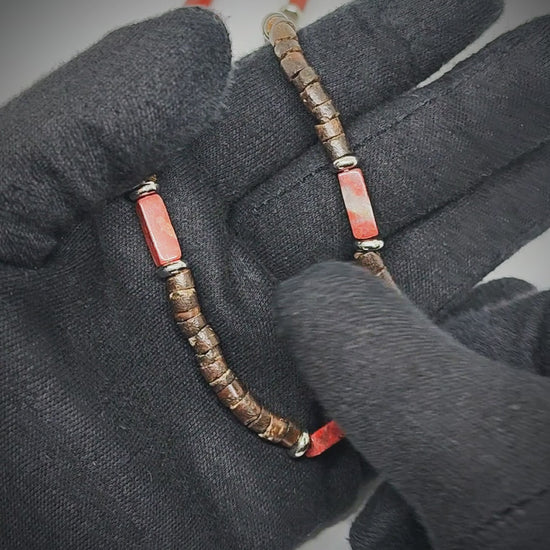 WILDWOOD TRIBAL - Brick Red Jasper 6 mm Beaded Necklace for Men and Boys (20 inches with adjustable silver cable chain)