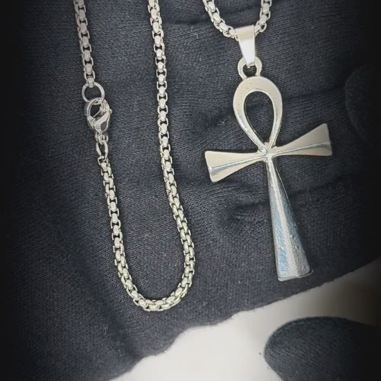 ANKH - 28mm Titanium Steel Pendant with 27inch Round Box 4mm Chain for Men & Boys