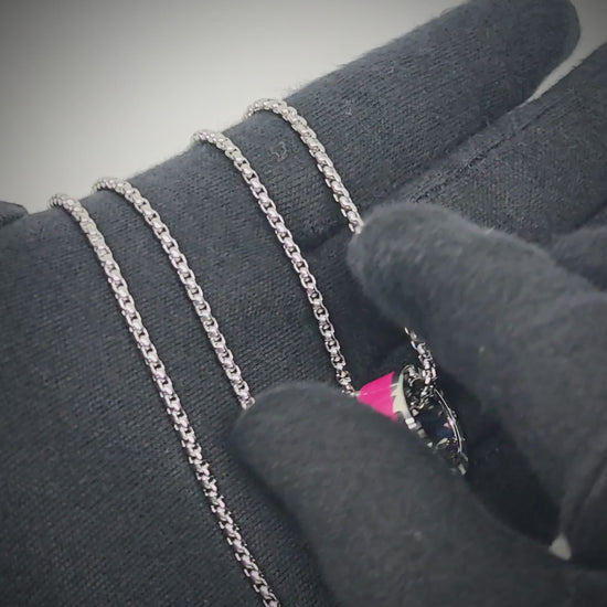 Meet the AURORA CORE — a bold, contemporary pendant designed to elevate any look with a bright Cherry-Red 21mm centerpiece, paired with a robust 24-inch round box chain (4mm) for men and boys who crave modern style and confident presence.