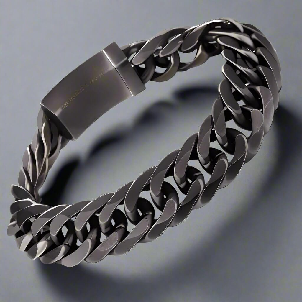 Discover a bold accessory that adds an unmistakable masculine flair to any outfit. The GRAVITAS LINK Bracelet is crafted from pure black titanium steel, designed specifically for men and boys who appreciate both style and strength.