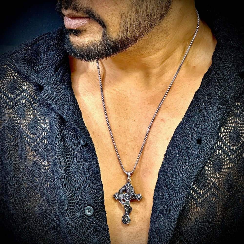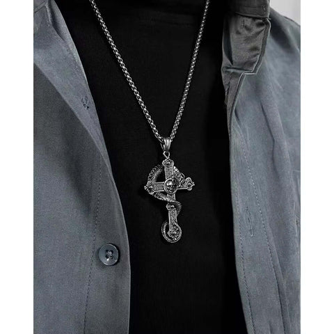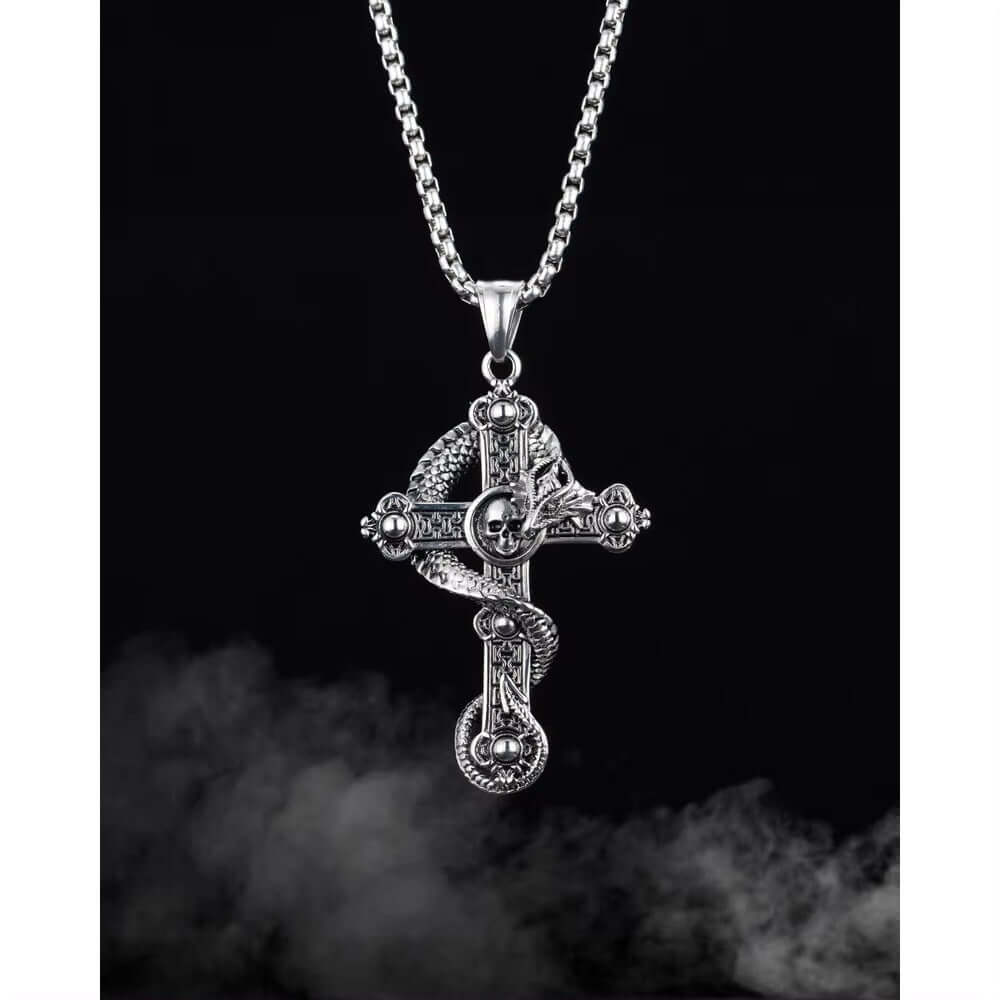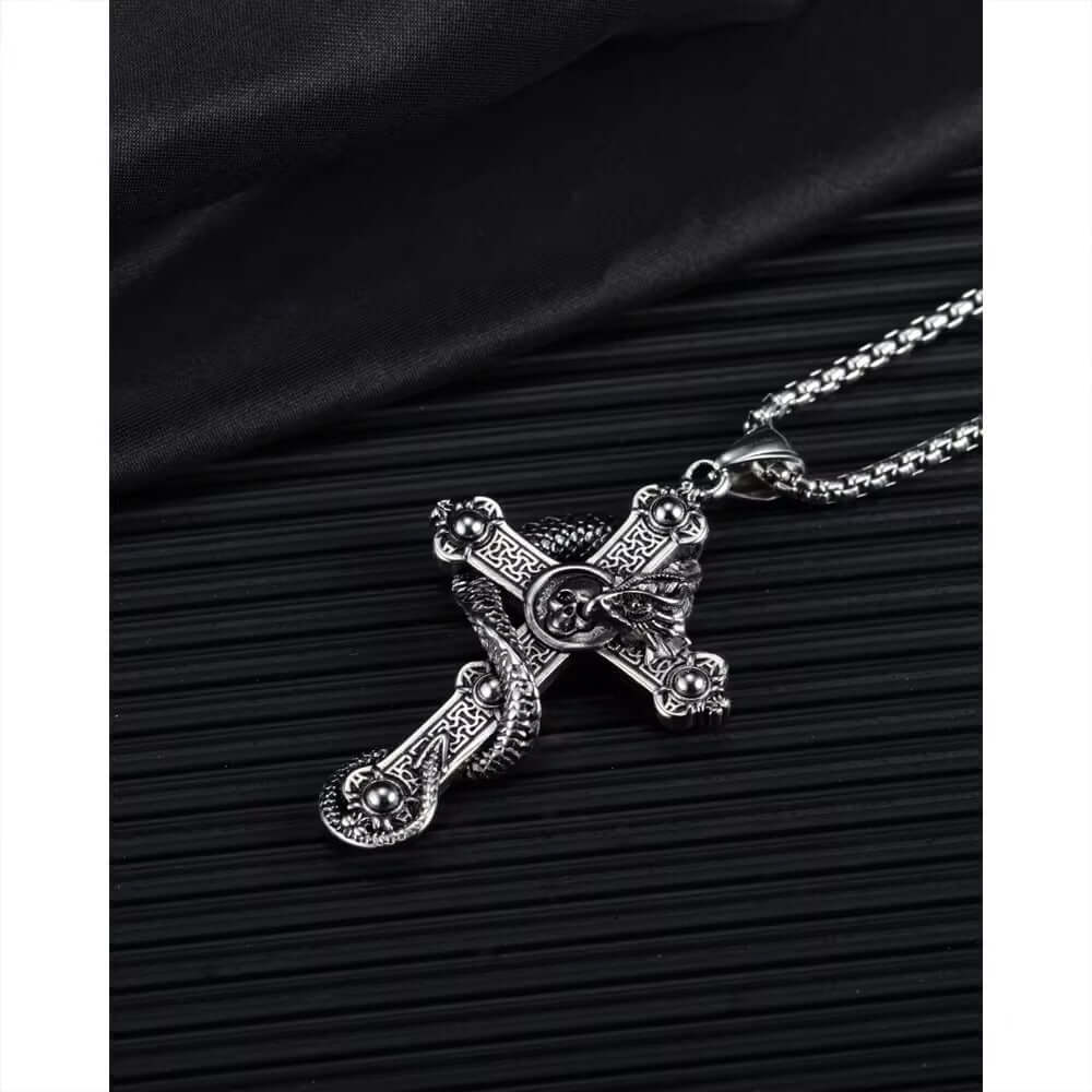 Elevate your style with the COBRA CROSS (T), a stunning piece of jewelry crafted from pure titanium steel. This pendant is not just a fashion accessory; it embodies strength and sophistication, perfect for the modern man or boy.