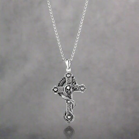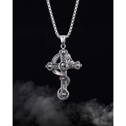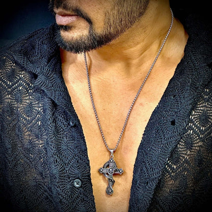 COBRA CROSS (T) - Pure Titanium Steel Pendant with Stainless Steel 24inch Round Box Chain, European trending Style for Men & Boy