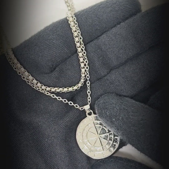 - 25mm coin pendant with compass design: a distinctive centerpiece that blends navigation-inspired symbolism with rugged style.