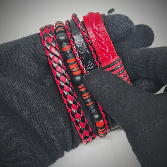 Crimson Fury: 4-Piece Leather Bracelet Set
