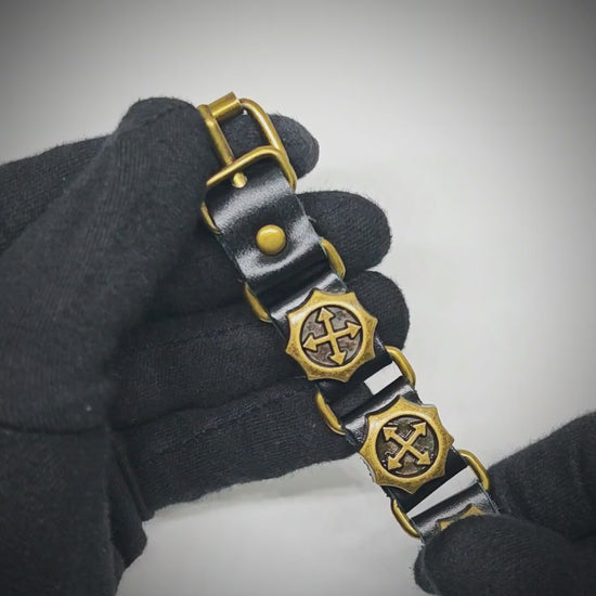 Meet the CRUSADER GEAR 20mm Black Genuine Leather Adjustable Bracelet for Men & Boys (8.8 inch). Crafted for daily wear, this rugged yet refined accessory blends a bold black leather strap with brass-tone hardware to deliver a timeless, masculine look that pairs perfectly with casual and smart-casual outfits alike. The 8.8-inch length is designed to be easily adjustable, ensuring a secure, comfortable fit for a wide range of wrists.