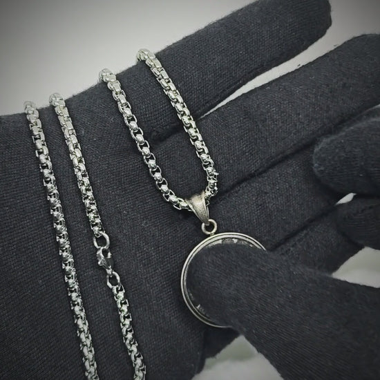 MYSTIC HOUR - 30mm Titanium Steel Pendant with 24inch Round Box 5mm Chain for Men & Boys