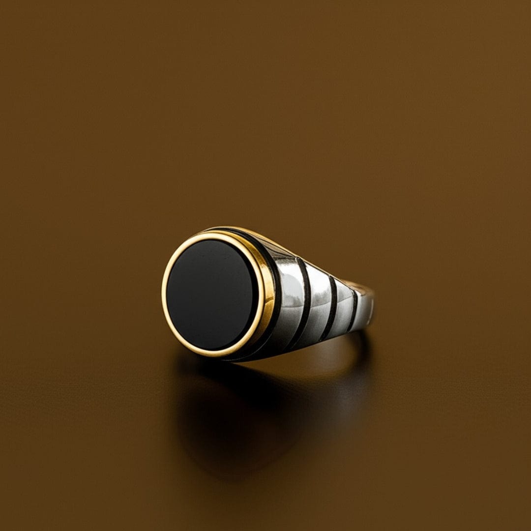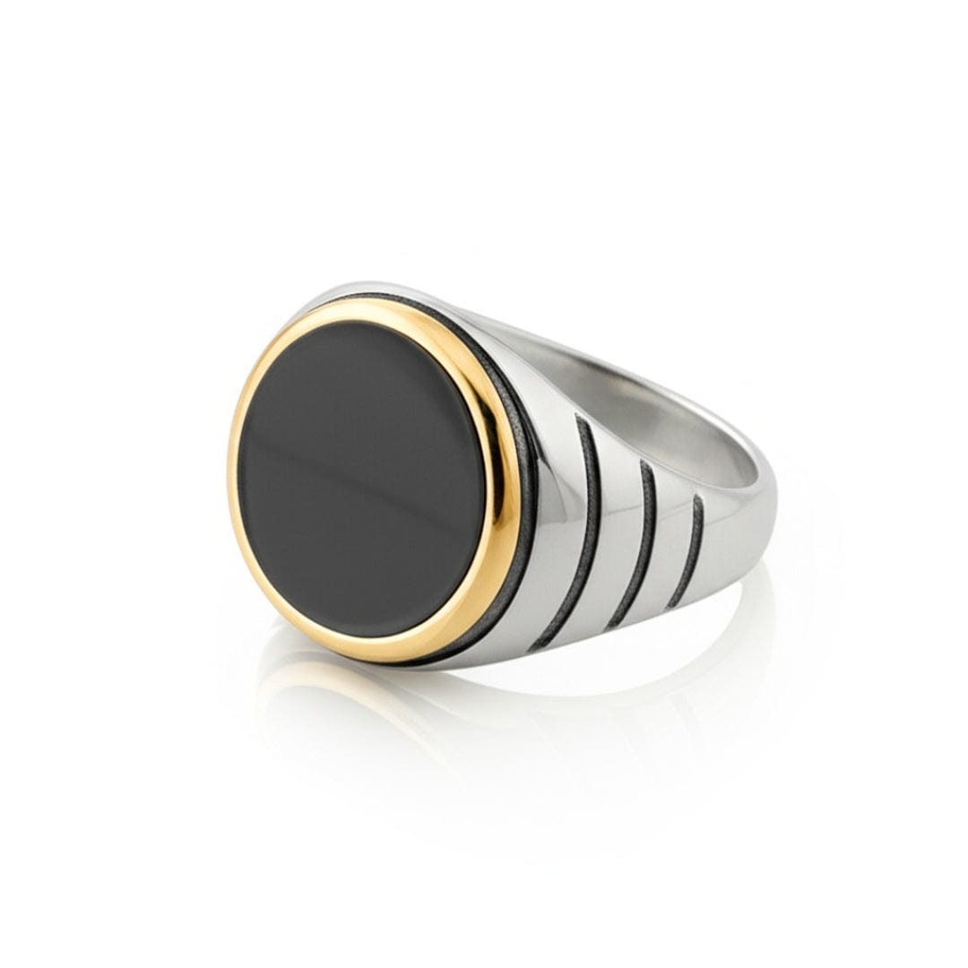 Royal Series - BLACKSTAR HALO RING - Pure Stainless Steel Men’s Steel-Gold-Plated Ring – Statement Luxury Jewelry (Size : 19-22-24-27)
