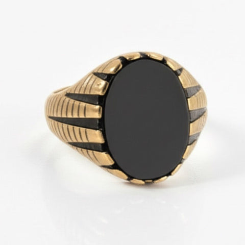 Introducing the Royal Series - PRIME CREST RING, a stunning piece of luxury jewelry crafted for the modern man. Made from pure stainless steel and elegantly gold-plated, this ring is designed to make a bold statement while offering durability and style.