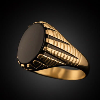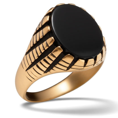 Royal Series - PRIME CREST RING - Pure Stainless Steel Men’s Gold-Plated Ring – Statement Luxury Jewelry (Size : 16-19-22-24-26)