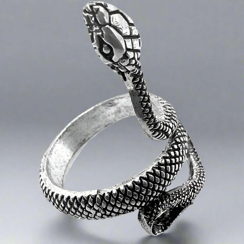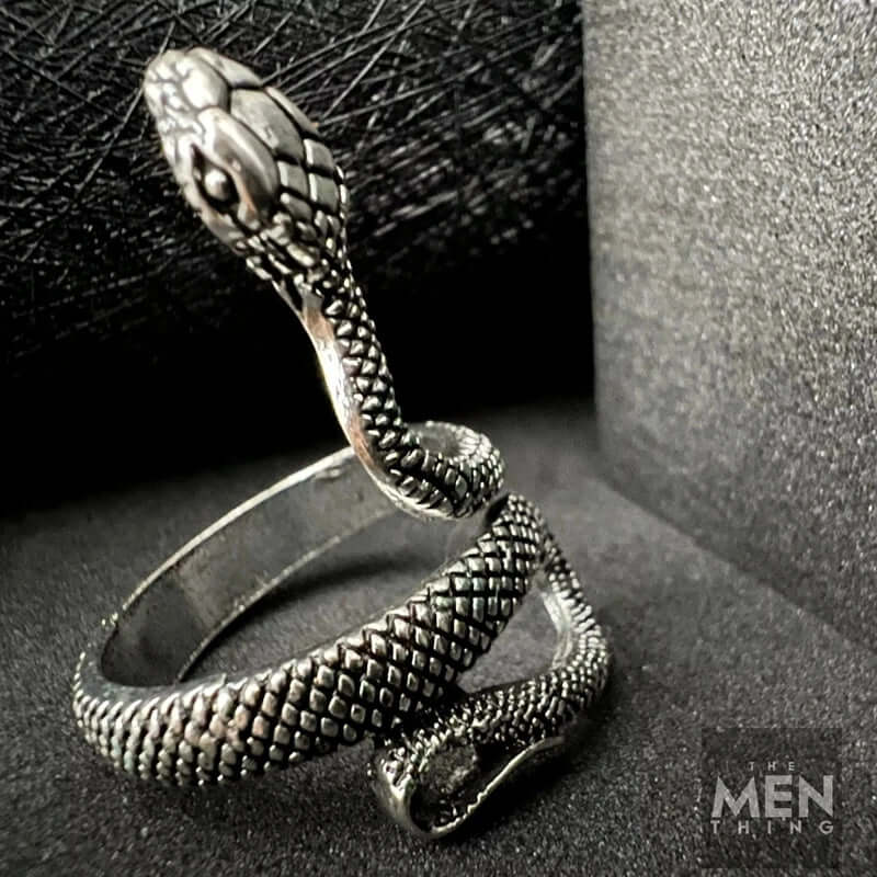 COBRA-STRIKE - Alloy Adjustable Vintage Silver Tone Snake Ring for Men & Boys