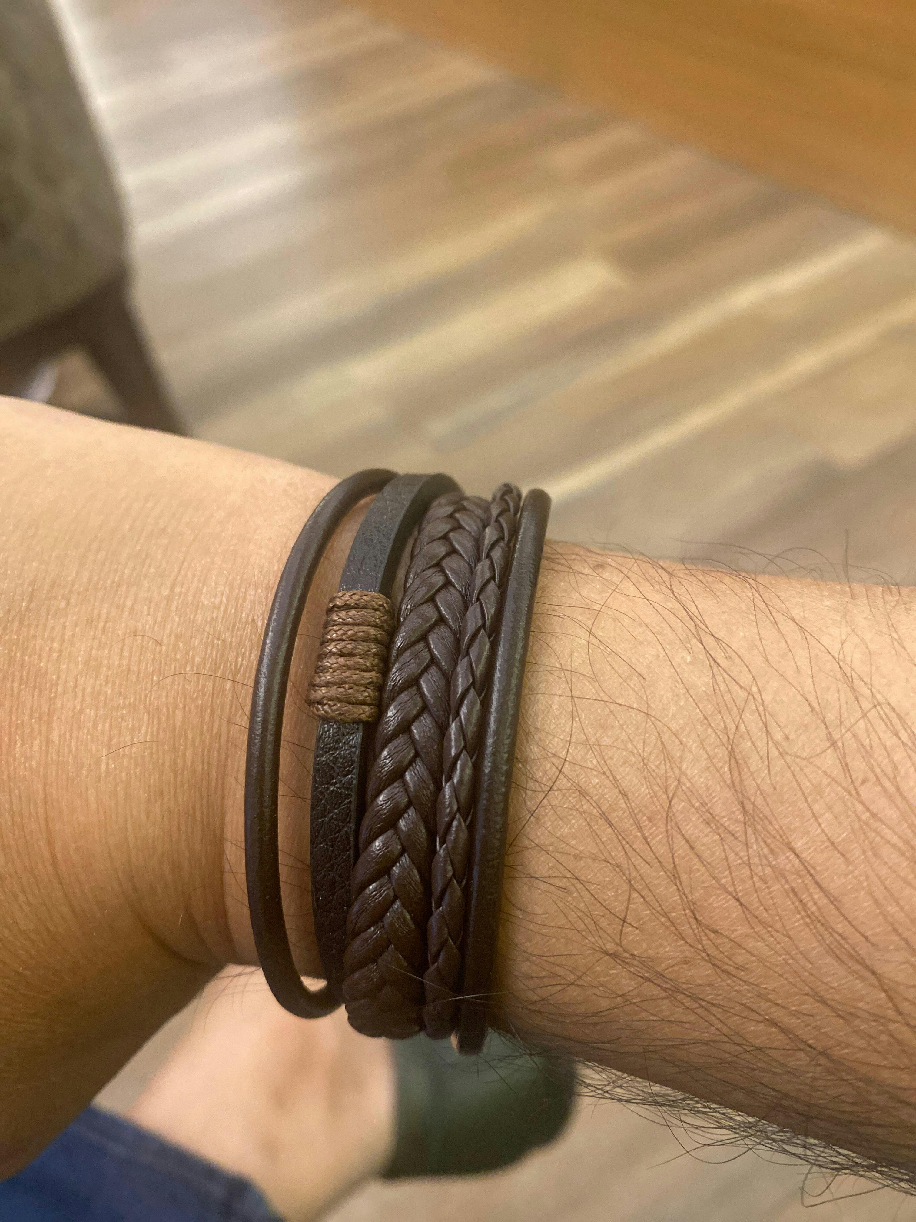 Embrace style and sophistication with the TIERED TREASURE BROWN, a luxurious leather bracelet designed for the modern man. This multi-layered, braided masterpiece is not just an accessory; it's a statement.