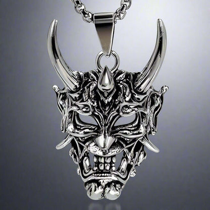 DEAMON MASK - Pure Titanium Steel Pendant with 24inch Round Box Chain for Men & Boys