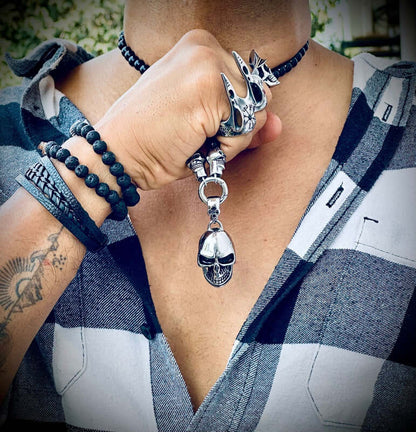 This Gothic Skull Necklace is my go-to accessory. The titanium steel is top-notch, and the onyx beads are truly captivating.