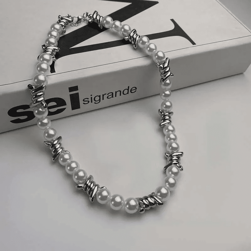 Elevate your accessory game with the TWISTED KNOT - Italian Styled Pearl with Twist Metal Knot Choker Necklace, designed exclusively for men and boys. This striking 20-inch necklace combines sophistication with contemporary flair, making it the perfect addition to any wardrobe.