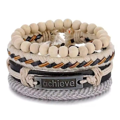 TRAVERSE KNOT - 4 Pcs Genuine Braided Leather Bracelet Set for Men & Boys (8 inch)