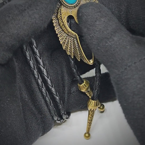 TURQUOISE FALCON BOLO – 2.4 inch Pure Stainless Steel Pendant with Adjustable Black Leather Rope for Men & Boys