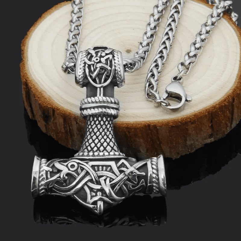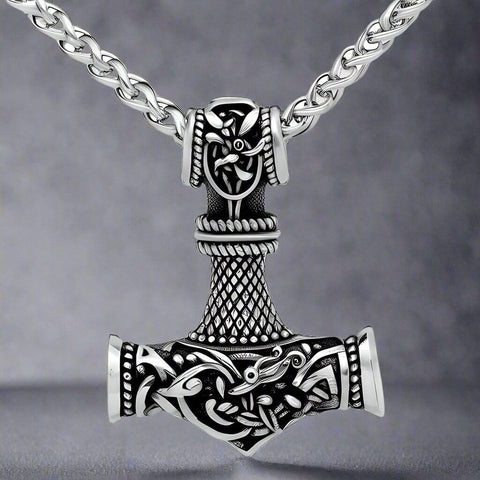 Elevate your style and channel the spirit of the Norse Gods with our VIKING NORSE GOD HAMMER SILVER necklace. More than just an accessory, it's a statement of strength, resilience, and enduring appeal.