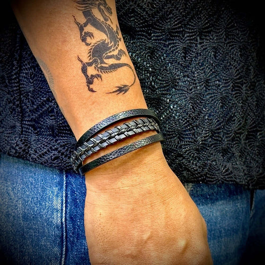 WRAITHBINDER BROWN - Genuine Braided Leather Bracelet Set for Men & Boys (8inch)