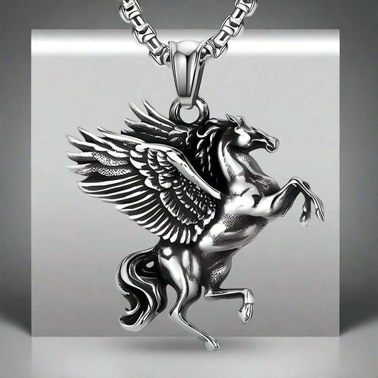 CYBER-MYTHOS High Contrast 5-Piece Men’s Pendant Set – PEGASUS, ROBOT, REALM AXE, THE COBRA, & ROCKER Necklaces on 24 Inch Stainless Steel Chain for Mens and Boys