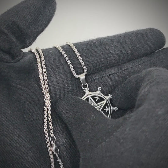 Crafted from durable titanium steel, this pendant is built to endure daily wear while remaining comfortable against the skin. The 24-inch round box chain, with a 4mm width, sits neatly at the neckline, providing a balanced silhouette that complements both casual and formal looks for men and boys alike.