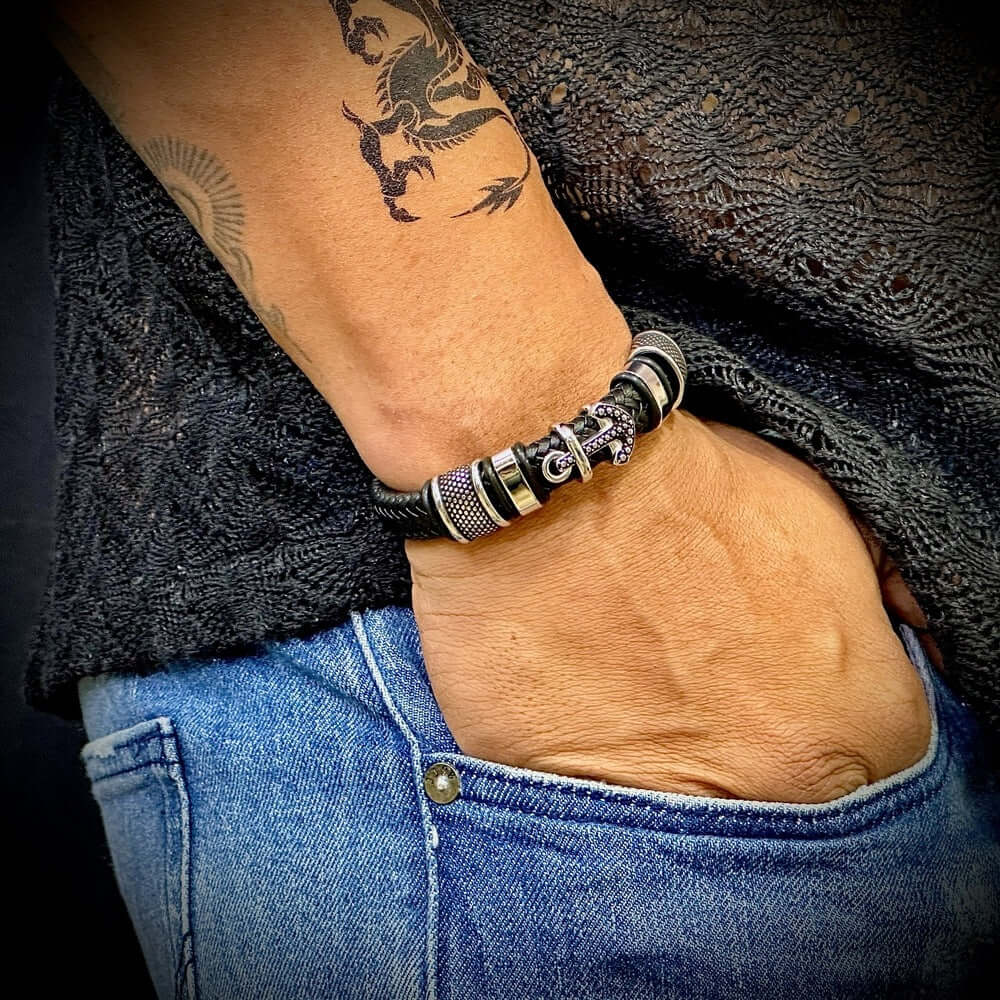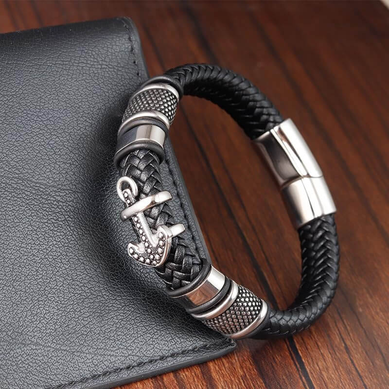 యాంకర్ క్రాకెన్ బ్లాక్తో మీ అనుబంధ గేమ్ను ఎలివేట్ చేయండి. వ్యక్తిగత స్టైల్ కోసమో లేదా ఆలోచనాత్మకమైన బహుమతిగానో, ఈ నిజమైన లెదర్ అల్లిన బ్రాస్లెట్ ఖచ్చితంగా ఆకట్టుకుంటుంది.