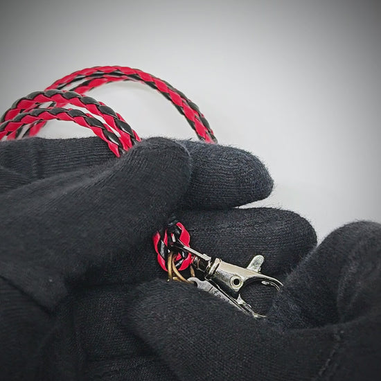 - Red and black colorway with a textured braid that adds depth and modern attitude to any outfit.