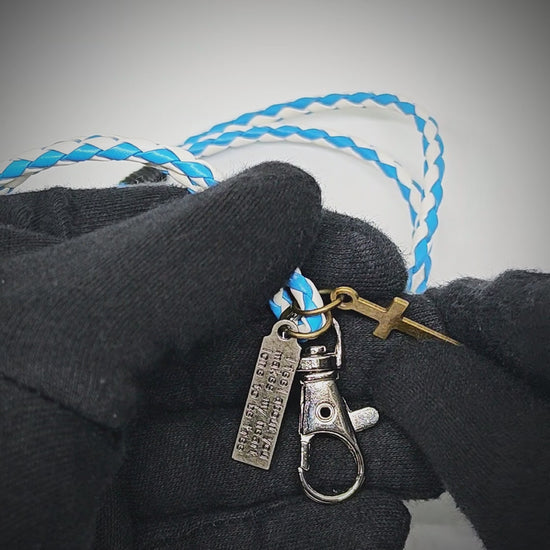 CROSSLOOM - White and Blue 10mm Genuine Leather Bracelet with Stainless Steel Lobster Clasp for Men & Boys (15 inch)
