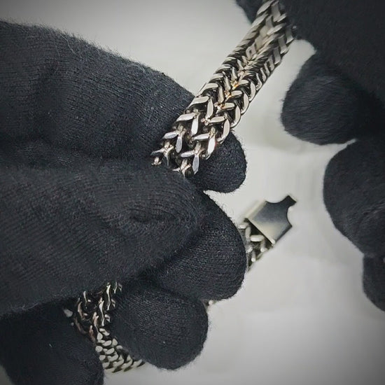 The interlocking, double-link pattern creates a rugged yet refined texture that catches light from every angle. This isn’t a slim accessory—it's a statement of durability and character. The chunky 12mm profile offers a modern, versatile aesthetic that pairs beautifully with both casual outfits and dressier ensembles, making it an ideal anchor for a watch or other rugged jewelry.