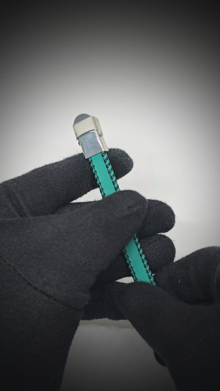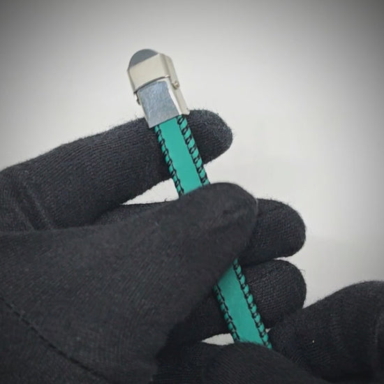 Introducing INFINITY NOIR Teal Green 10mm Genuine Leather Bracelet with Stainless Steel Fold-Over Push Clasp – a bold, versatile accessory designed for men and boys who value classic style with modern edge. The striking teal green hue sets itself apart, while the durable construction ensures this bracelet stands up to daily wear.