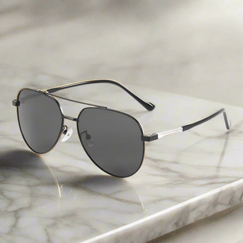 Introducing the J3335 - SUNLIT ELEGANCE - HD Polarised Sunglasses for Men - UV400 Protection, Stainless Steel Frame - Black Frame Black Lens, where style meets functionality. Designed for the modern man, these sunglasses offer an unparalleled blend of sophistication and protection. Crafted with a durable stainless steel frame, they exude elegance while ensuring maximum comfort and longevity.