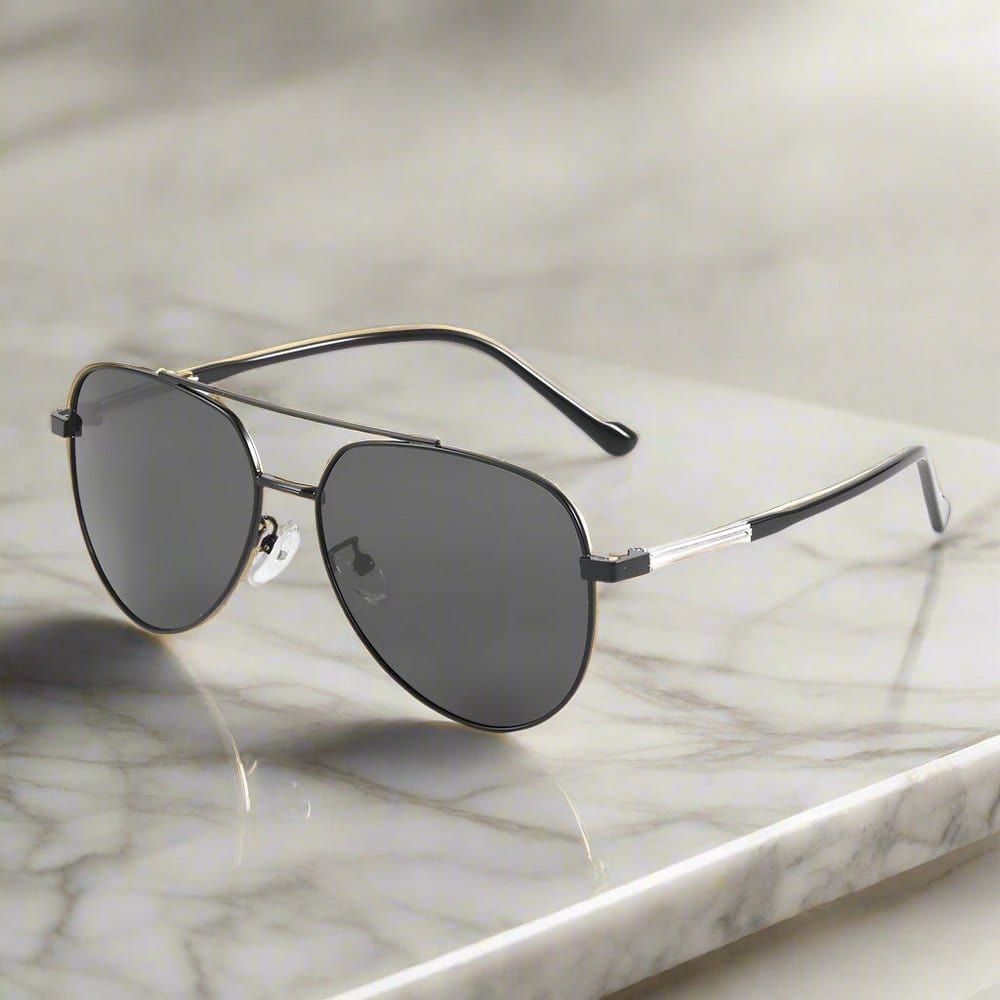 J3335 - SUNLIT ELEGANCE - HD Polarised Sunglasses for Men - UV400 Protection, Stainless Steel Frame - Black Frame with Black Lens