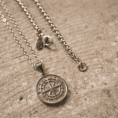 నార్త్ స్టార్ - స్టెయిన్లెస్ స్టీల్ రౌండ్ బాక్స్ చైన్ సెట్తో సిల్వర్ టోన్ లాకెట్టు