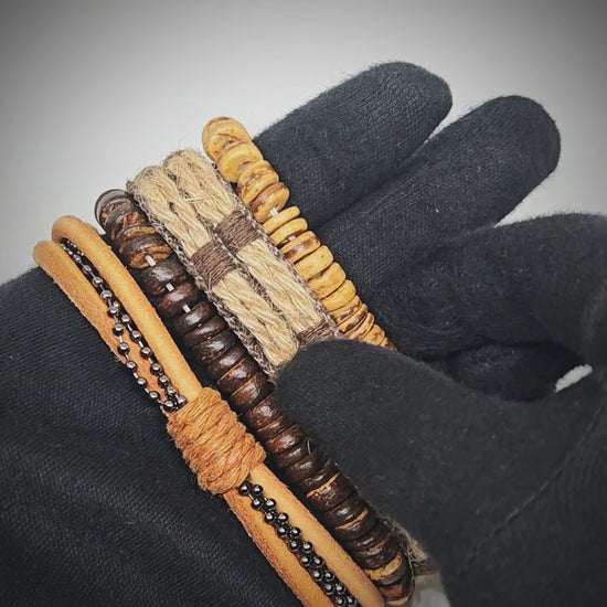 Elevate your wrist game with a stackable leather collection that offers both simplicity and character. The natural brown tones, combined with varied textures, ensure each piece adds depth to your look without overpowering it.