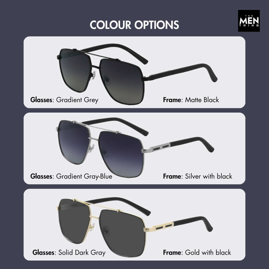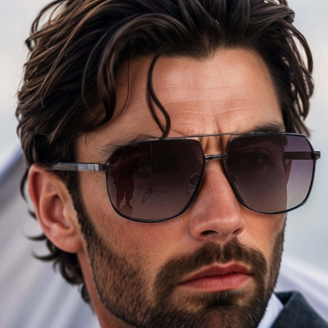 Introducing the Shadow Luxe Double Bridge Aviator Style HD Polarised Sunglasses, designed for the modern man who values both functionality and fashion. Crafted with precision, these sunglasses are the perfect companion for your sun-soaked adventures.