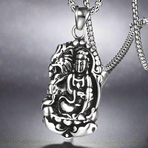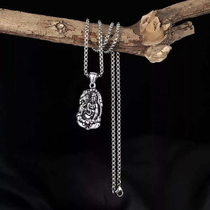 SHIVA THE PROTECTOR - Pure Vintage Pure Steel Pendant with 24inch Round Box Chain for Men & Boys