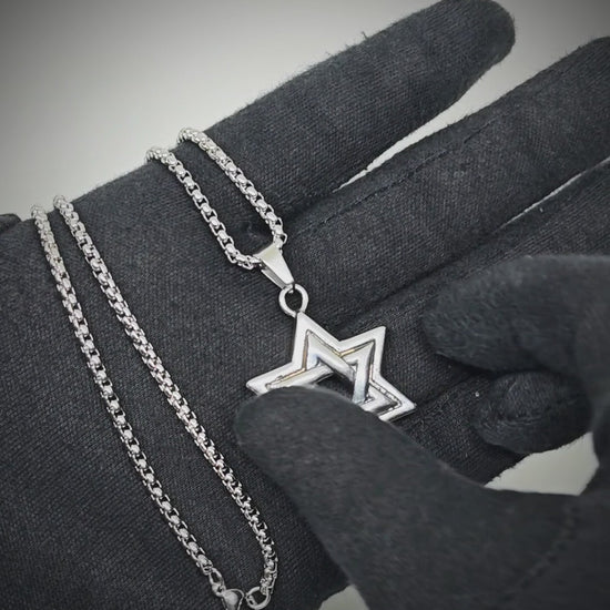 STAR LATTICE - 34mm Titanium Steel Pendant with 24inch Round Box 5mm Chain for Men & Boys